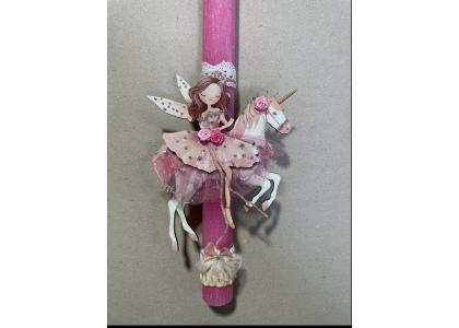 Λαμπάδα ροζ με νεριδούλα ξύλινη